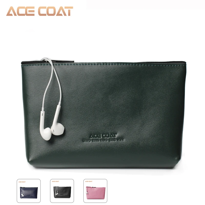ACECOAT Split Leather Mouse pouch sleeve Bag for Wireless Mouse Storage Laptop adapter Charger USB